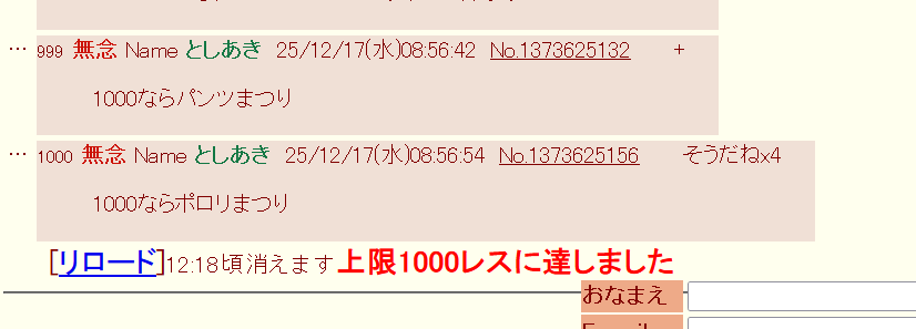 | … | 999無念Nameとしあき25/12/17(水)12:28:52No.1373654946+1000ならうわキツ祭り |