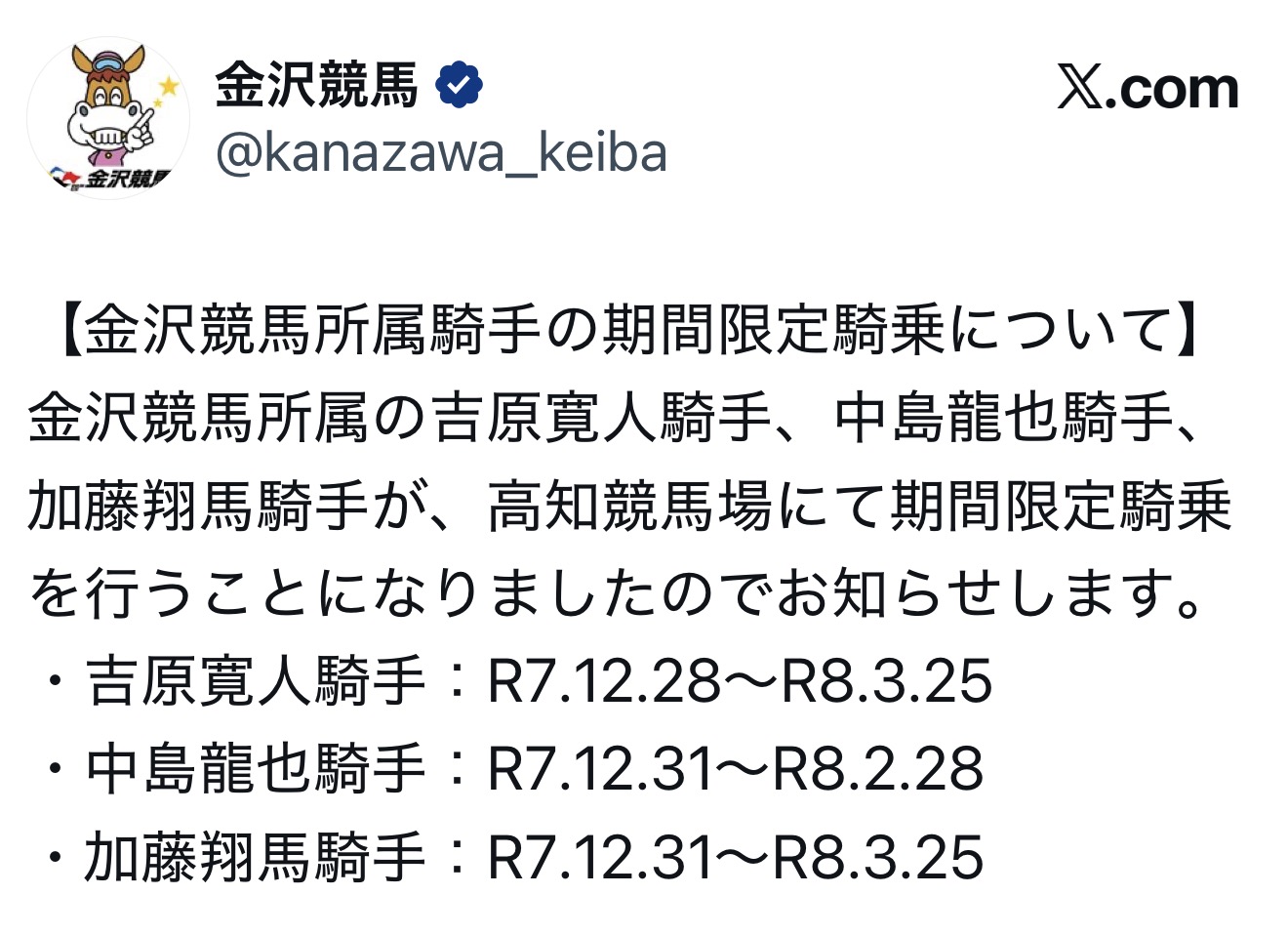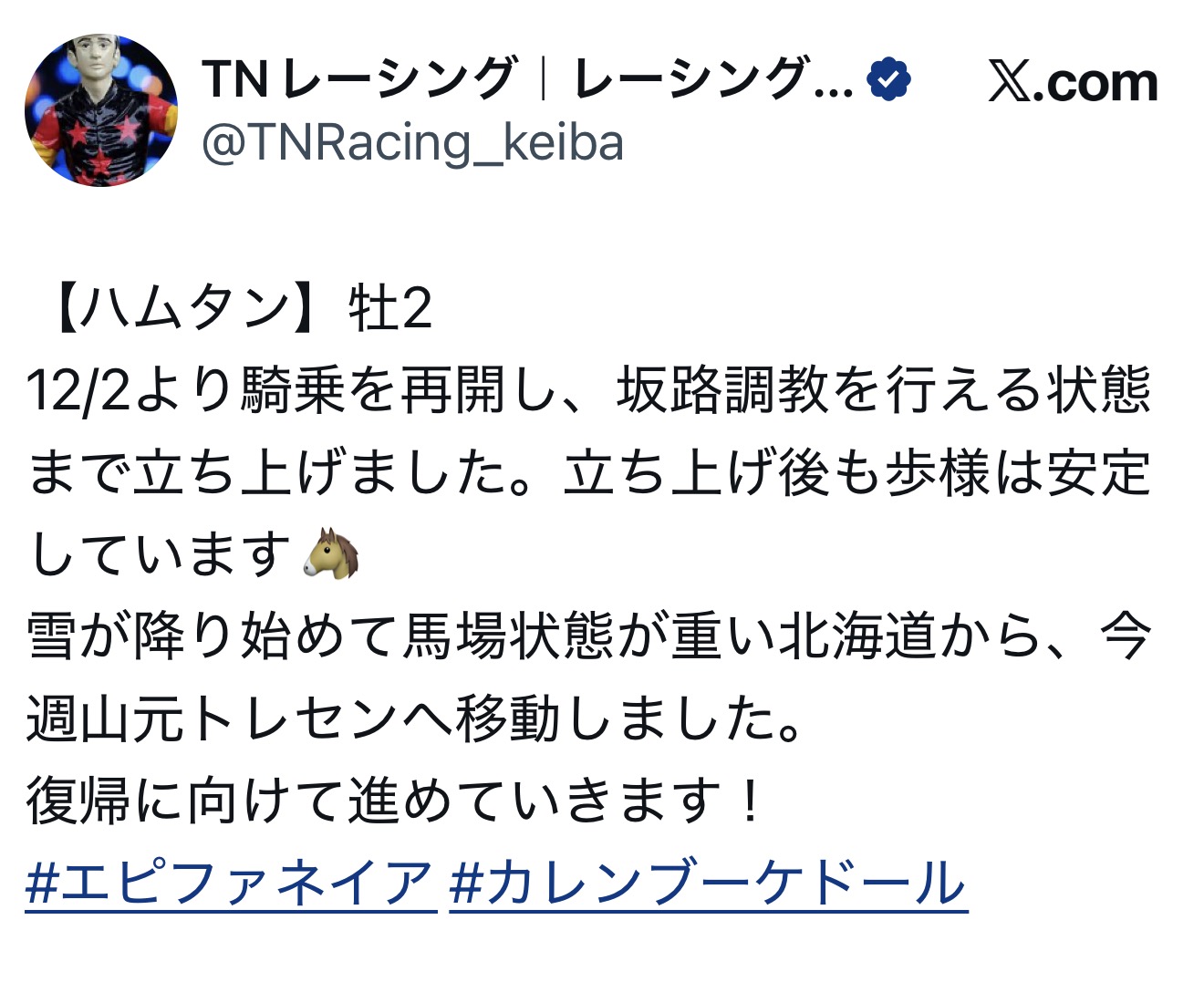 | … | 913無念Nameとしあき25/12/18(木)18:38:36No.1373938640そうだねx2 1766050716177.jpg-(18720 B) https://news.netkeiba.com/?pid=news_view&no=316856 |