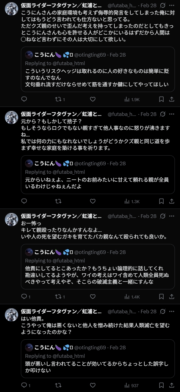 | … | 57無念Nameとしあき25/12/19(金)19:15:41No.1374153939+>「俺に楯突くウルトラ信者はこいつだ!」ってやってるけど普通にそれ犯罪行為だよ? |
