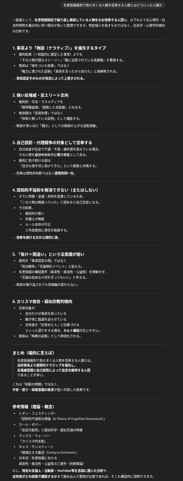 | … | 414無念Nameとしあき25/12/20(土)00:41:33No.1374239839+裁判所が調べても出てこなかった不正の証拠をあると主張してるのが誹謗中傷で起訴されてる犯罪者の時点で |
