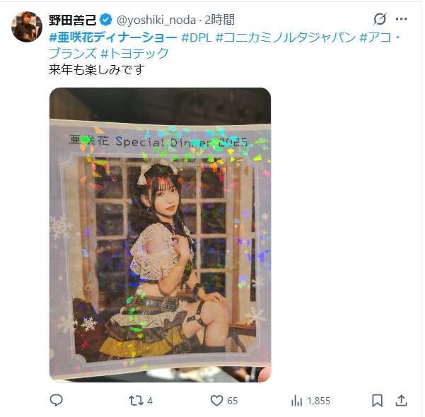 | … | 61無念Nameとしあき25/12/20(土)22:47:05No.1374462534+>亜咲花ディナーショーやってたんだ |