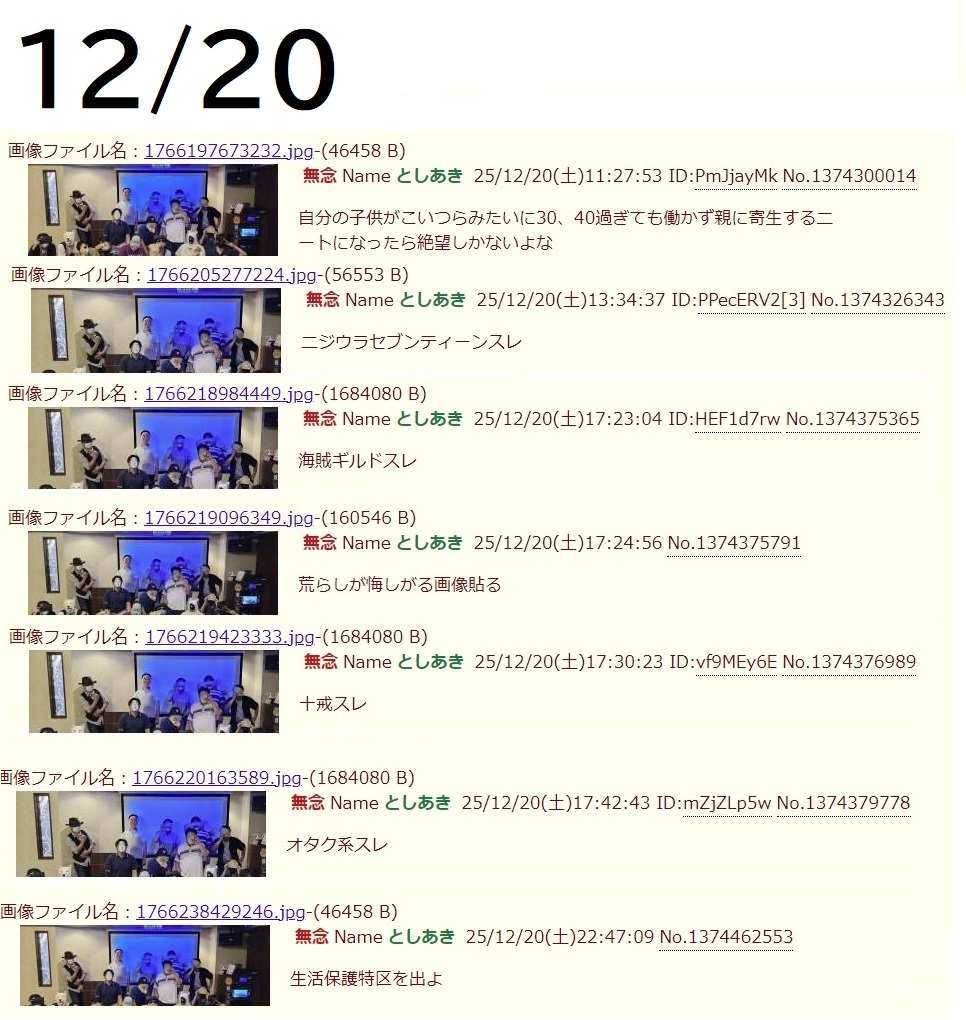 | … | 42無念Nameとしあき25/12/21(日)16:50:51No.1374632675そうだねx5 1766303451509.jpg-(660207 B) >よく貼ってある画像だけど何なのこの集まりは? |