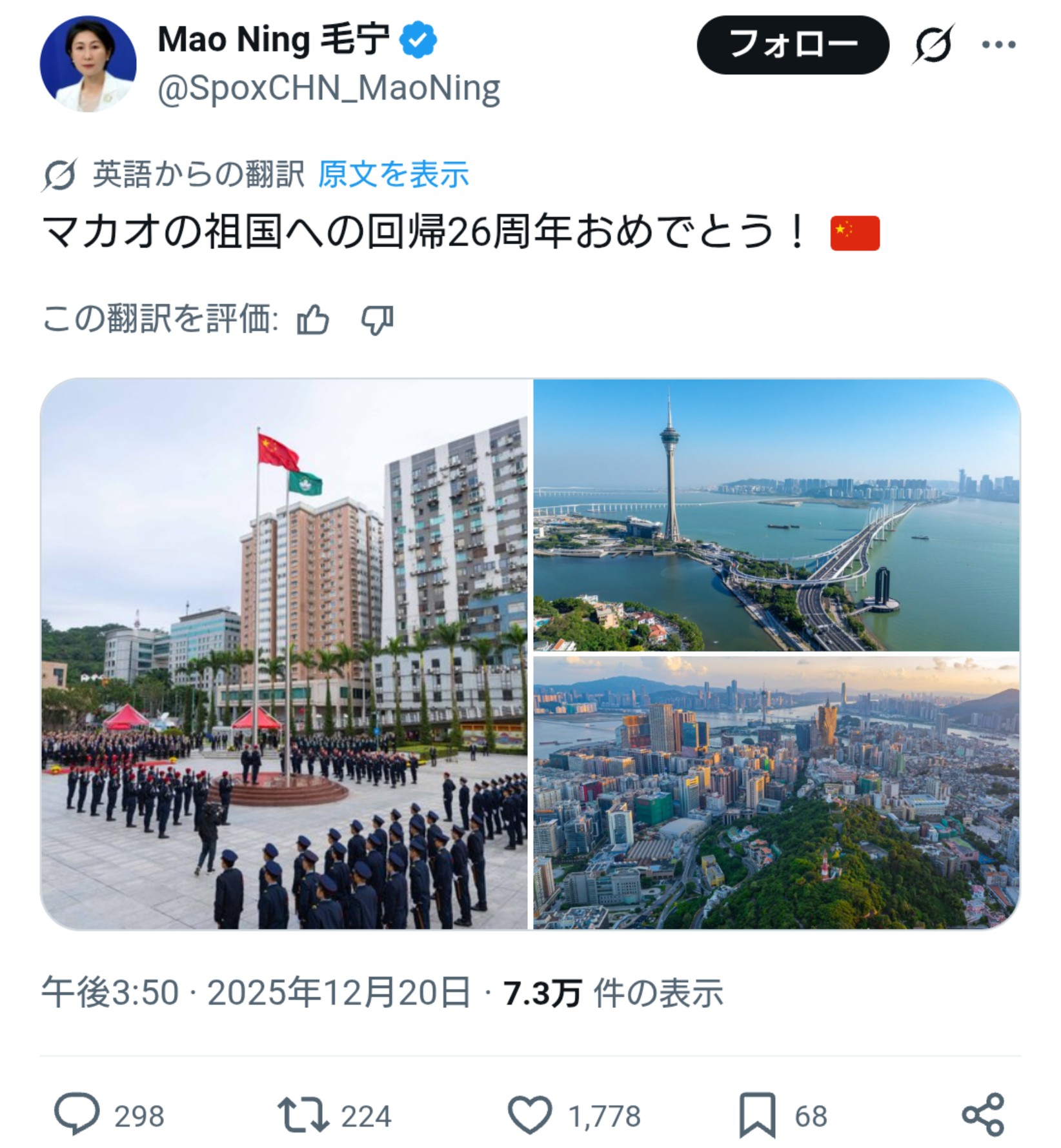 | … | 36無念Nameとしあき25/12/21(日)21:50:07No.1374722261そうだねx1中国報道官「日本は告げ口外交をやめろ!」 |