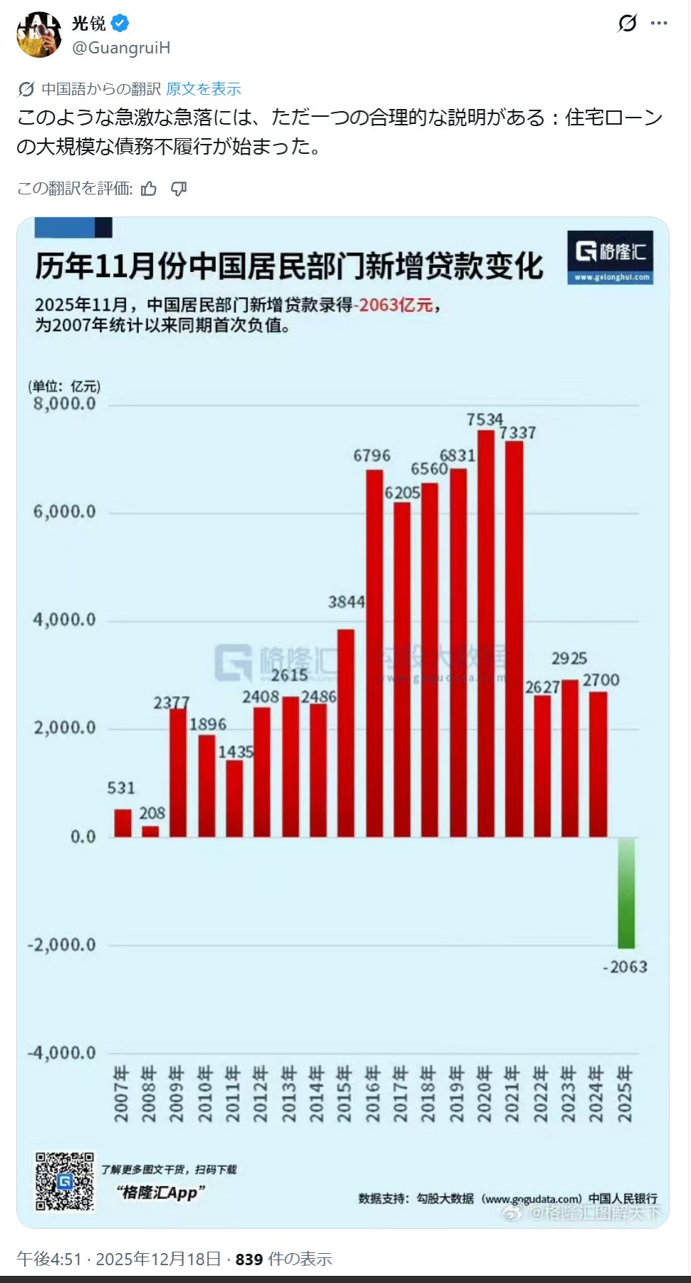 | … | 939無念Nameとしあき25/12/22(月)00:01:45No.1374759372+>>日本と戦うより先に自国の住宅バブルを何とかしろ |