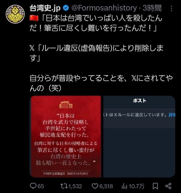 | … | 95無念Nameとしあき25/12/21(日)22:00:04No.1374725891そうだねx14>いやそもそも台湾殴るわって言われたら大半の国は賛同できないよ |