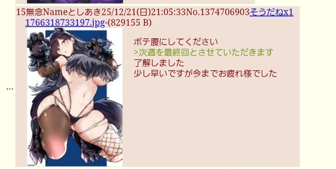 | … | 30無念Nameとしあき25/12/22(月)05:10:01No.1374785473そうだねx8>頼むから最後のスレくらい荒らすのやめとけよ? |