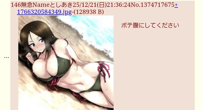 | … | 442無念Nameとしあき25/12/22(月)11:24:30No.1374815460+>女を孕ませた経験がないから自分のデブ腹を真似するしかないんだねキモおじさんは、、、、ペッ |