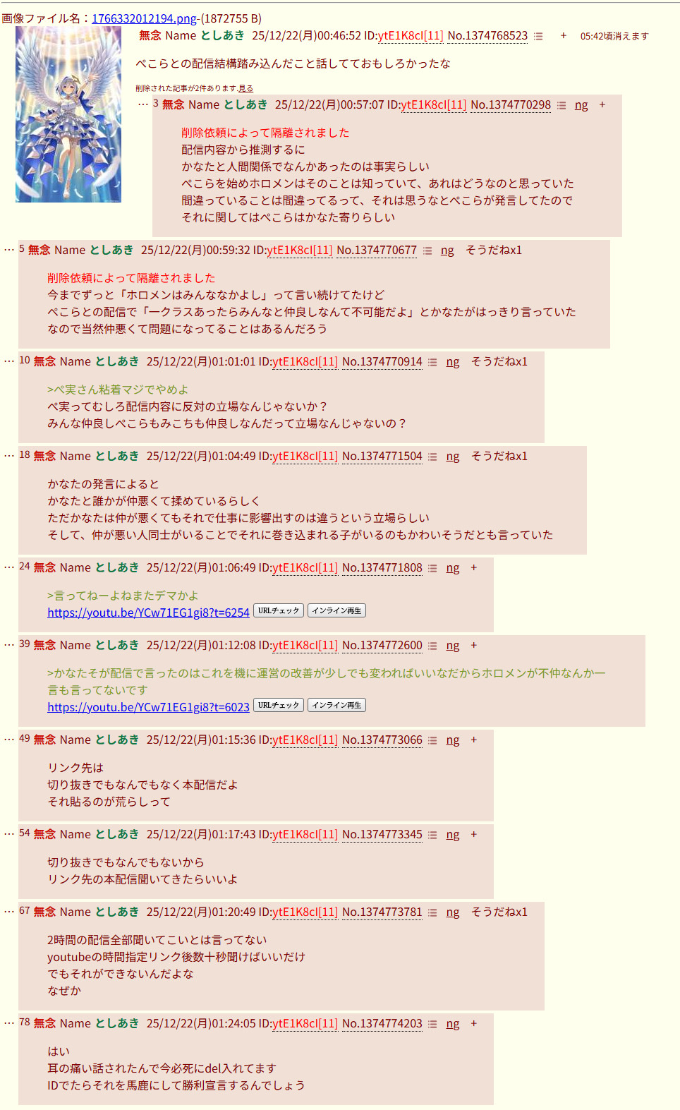 | … | 319無念Nameとしあき25/12/22(月)15:55:47 ID:H.gctRb2No.1374857817+あれだけ乱立してた暇空アンチスレが立たないなあ |