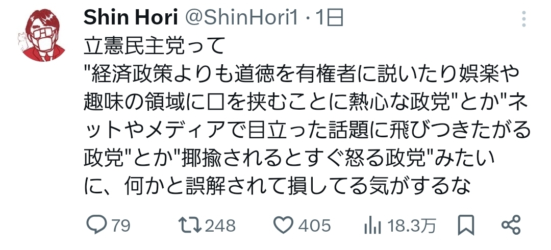| … | 52無念Nameとしあき25/12/23(火)12:57:46No.1375035190そうだねx5>こいつのせいで立憲が悪目立ちしてる気がするんだけど |