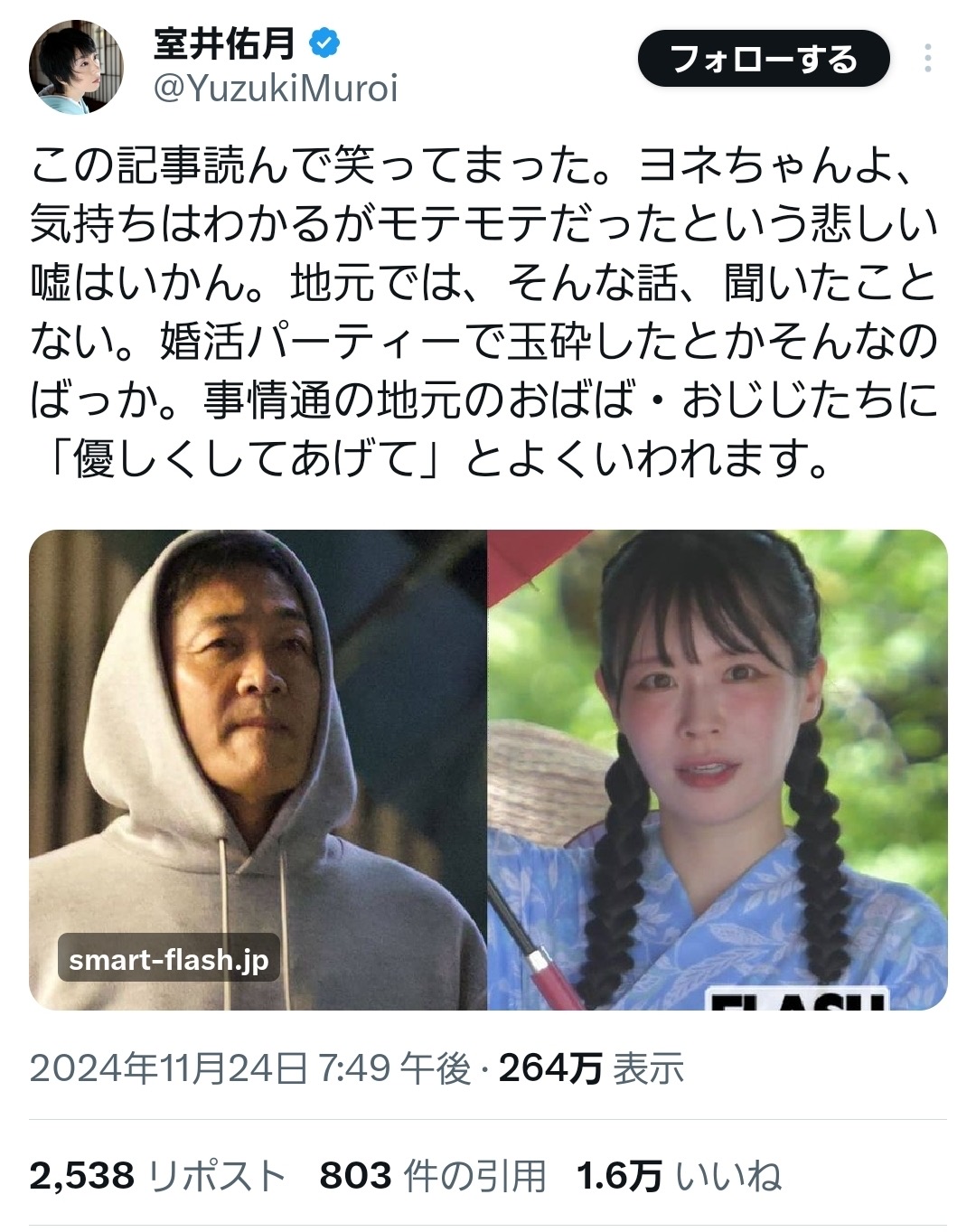 | … | 69無念Nameとしあき25/12/23(火)13:05:04No.1375036498+室井との結婚は「破れ鍋に綴じ蓋ってこれかぁ…」って思ったもんだが |