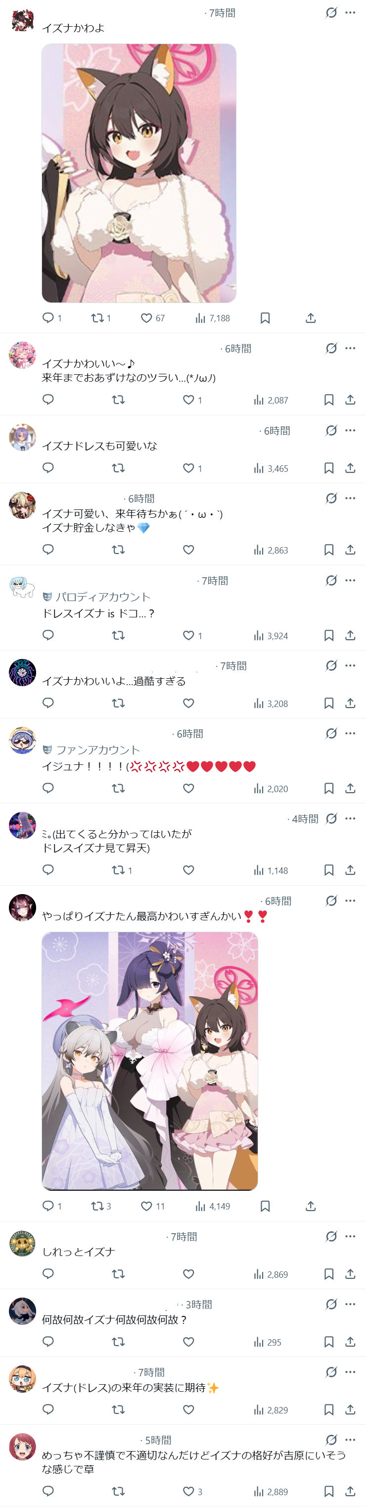 | … | 90無念Nameとしあき25/12/23(火)22:46:55No.1375157568+ヒゲもアイドルも復刻新規無かったのにイズナが実装されるなんて夢見すぎわよ |