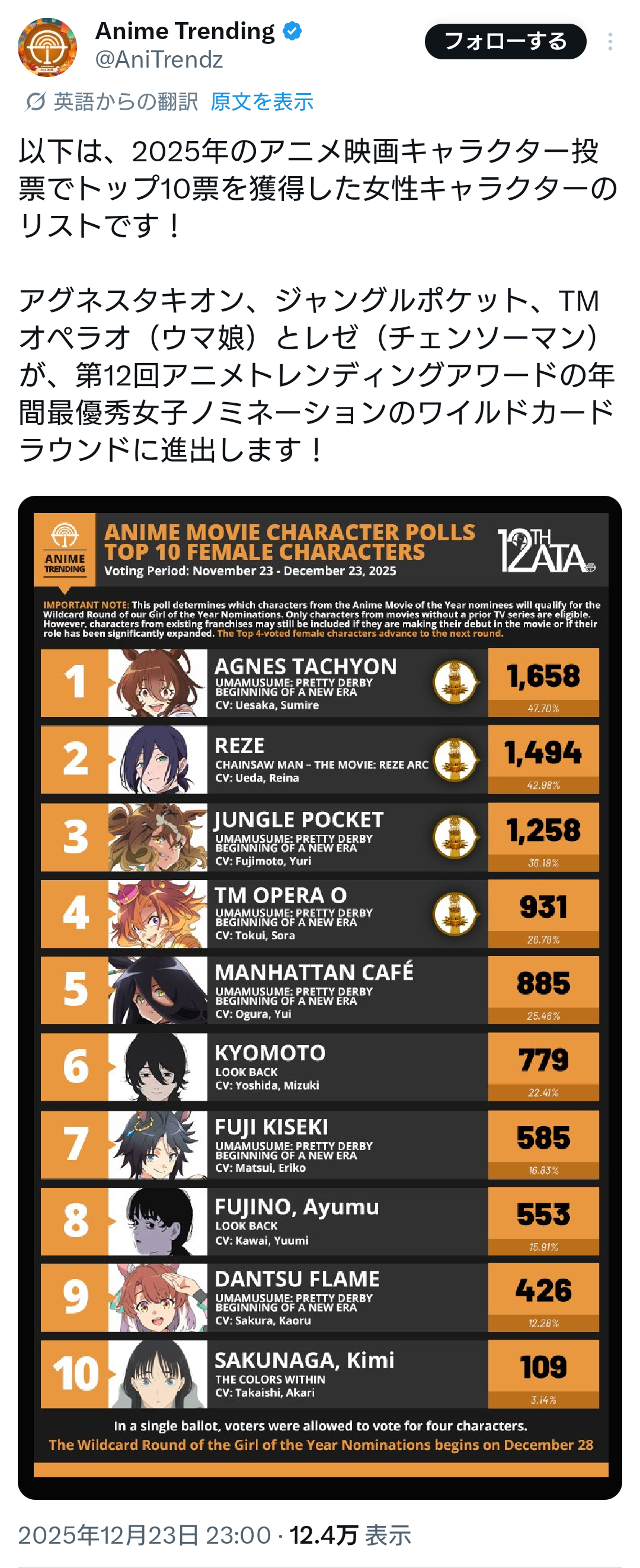 | … | 273無念Nameとしあき25/12/24(水)00:48:41No.1375183594そうだねx3>タツキとウマ娘でほぼ独占されてて笑う |