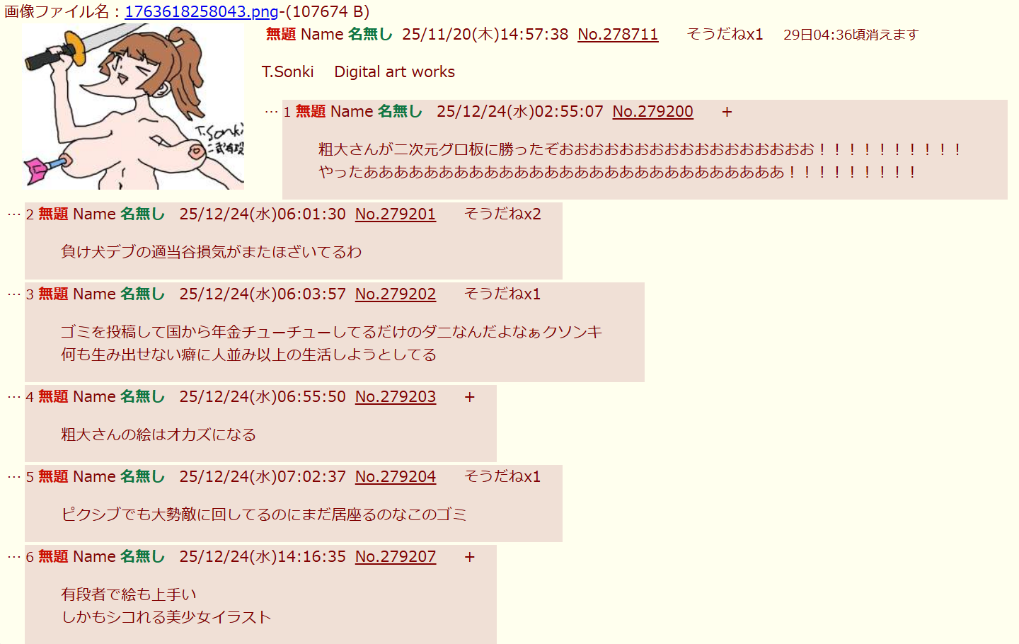 | … | 155無念Nameとしあき25/12/24(水)19:11:23No.1375310763そうだねx2 1766571083579.png-(262106 B) クリスマスイブにイライラソンキくんでした |
