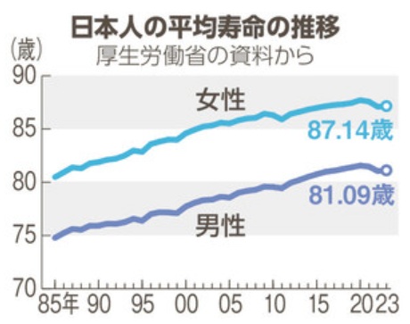 | … | 59無念Nameとしあき25/12/24(水)21:28:48No.1375351253そうだねx1 1766579328769.jpg-(41772 B) 平均寿命100歳を目指して右肩上がりだったのにコロナが来てから横這いから減少傾向に変わったね |