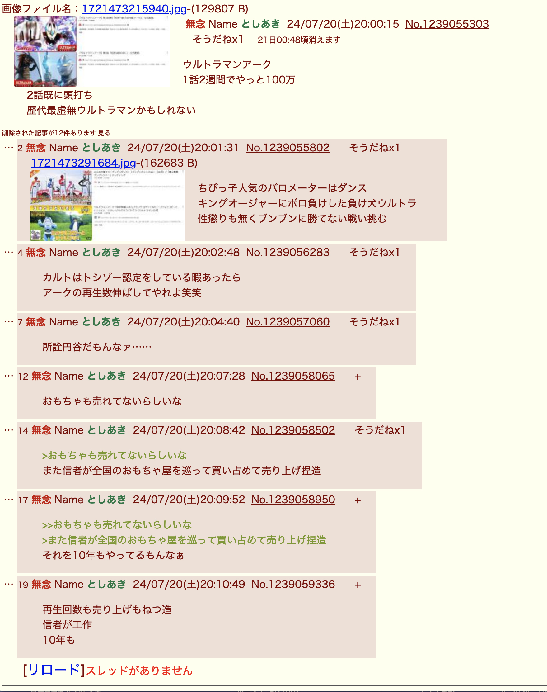 | … | 168無念Nameとしあき25/12/25(木)02:27:23No.1375410364+毎回毎回「これがウルトラ信者の本音!」とやるがよ |