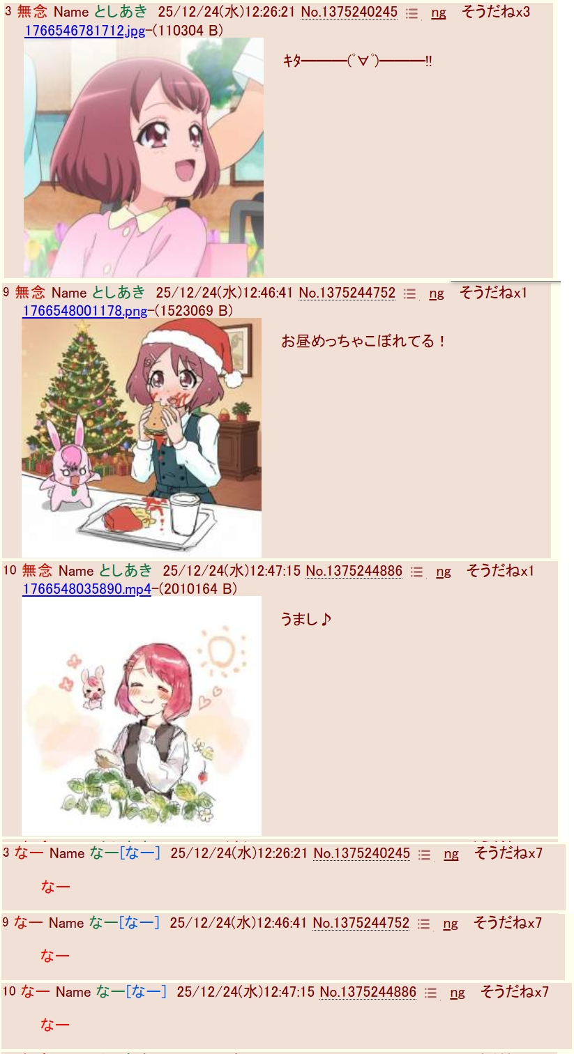 | … | 10無念Nameとしあき25/12/25(木)11:11:38No.1375446201そうだねx9>今日も消してひるのどかとかやるんです? |