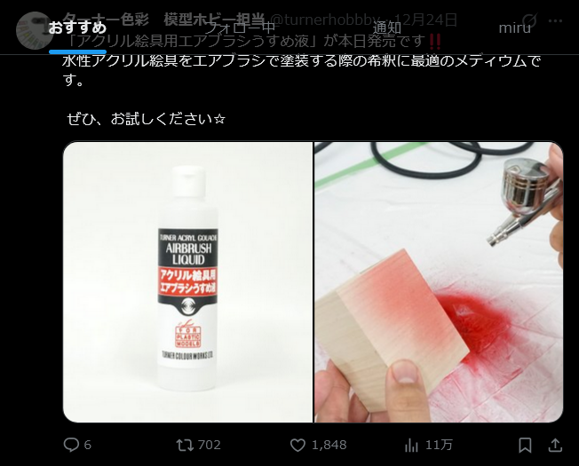 | … | 43無念Nameとしあき25/12/25(木)21:29:18No.1375566723+今日もヨドバシで初コンプレッサーとエアブラシを買うか悩んで帰ってきた |