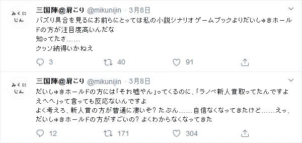 | … | 504無念Nameとしあき25/12/26(金)01:57:29No.1375622798+>三国はもともと無名のラノベ作家だし大してダメージ無かったんでないの |