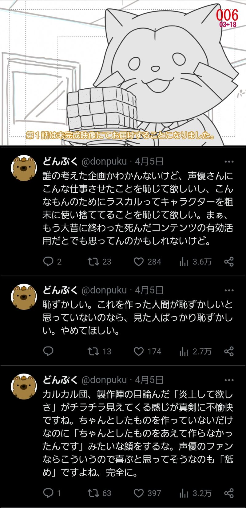 | … | 44無念Nameとしあき25/12/25(木)23:21:51No.1375598735そうだねx17>話を大きくした(マネタイズと煽動した)薬局の作者は結局アニメ化が再始動したら消さないと言った謝罪削除して知らん顔してたな |
