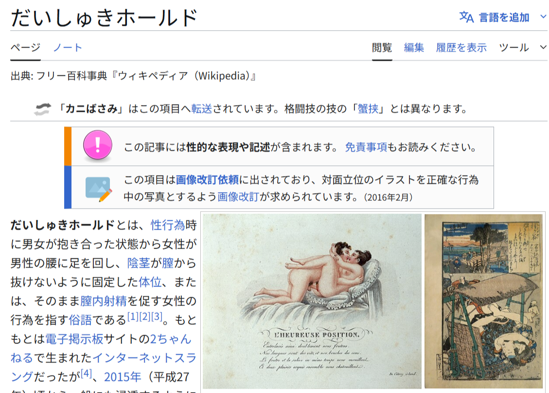 だいしゅきホールド事件削除された記事が1件あります.見る