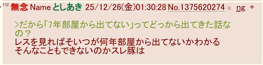 | … | 41無念Nameとしあき25/12/26(金)01:11:26No.1375618075そうだねx1>ん?このスレ立てた他責おじさんのお前 |