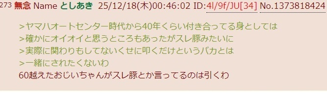 | … | 64無念Nameとしあき25/12/26(金)01:17:53No.1375618798そうだねx3>他責おじさんってスレ豚連呼が嫌われてるのをようやく理解して新しく作った造語? |