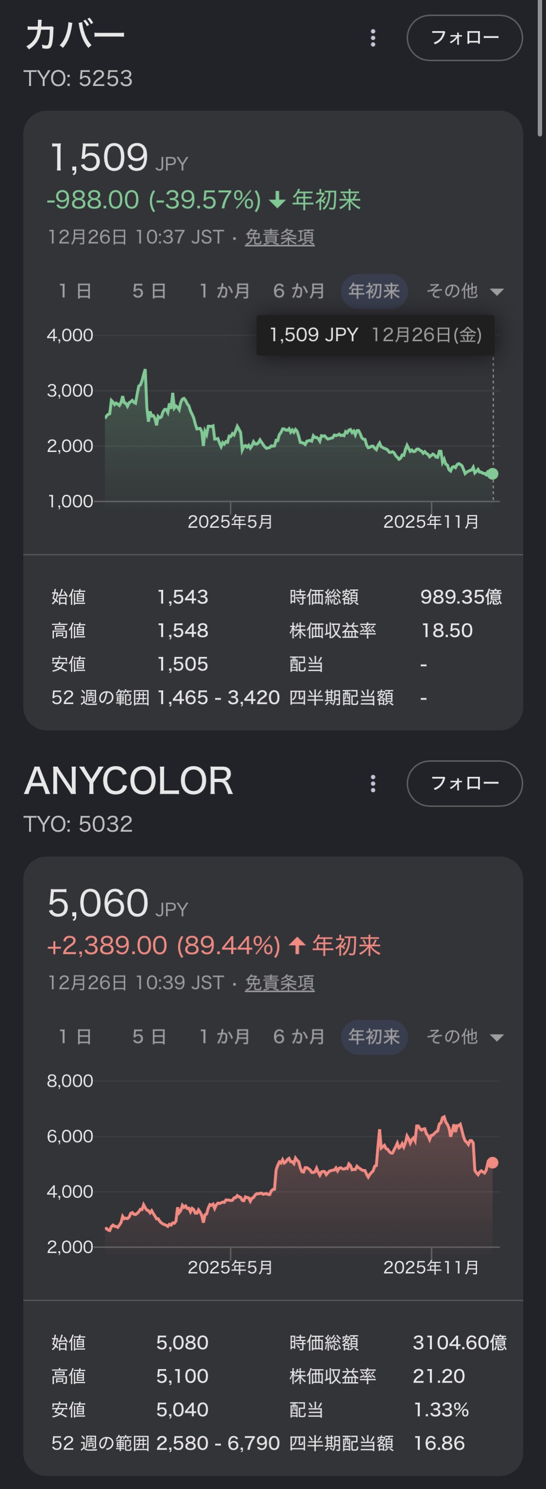| … | 86無念Nameとしあき25/12/26(金)10:46:17No.1375656868そうだねx7ここでカバーやホロメン叩いてもエニカラーの株価は上がりませんぞ |