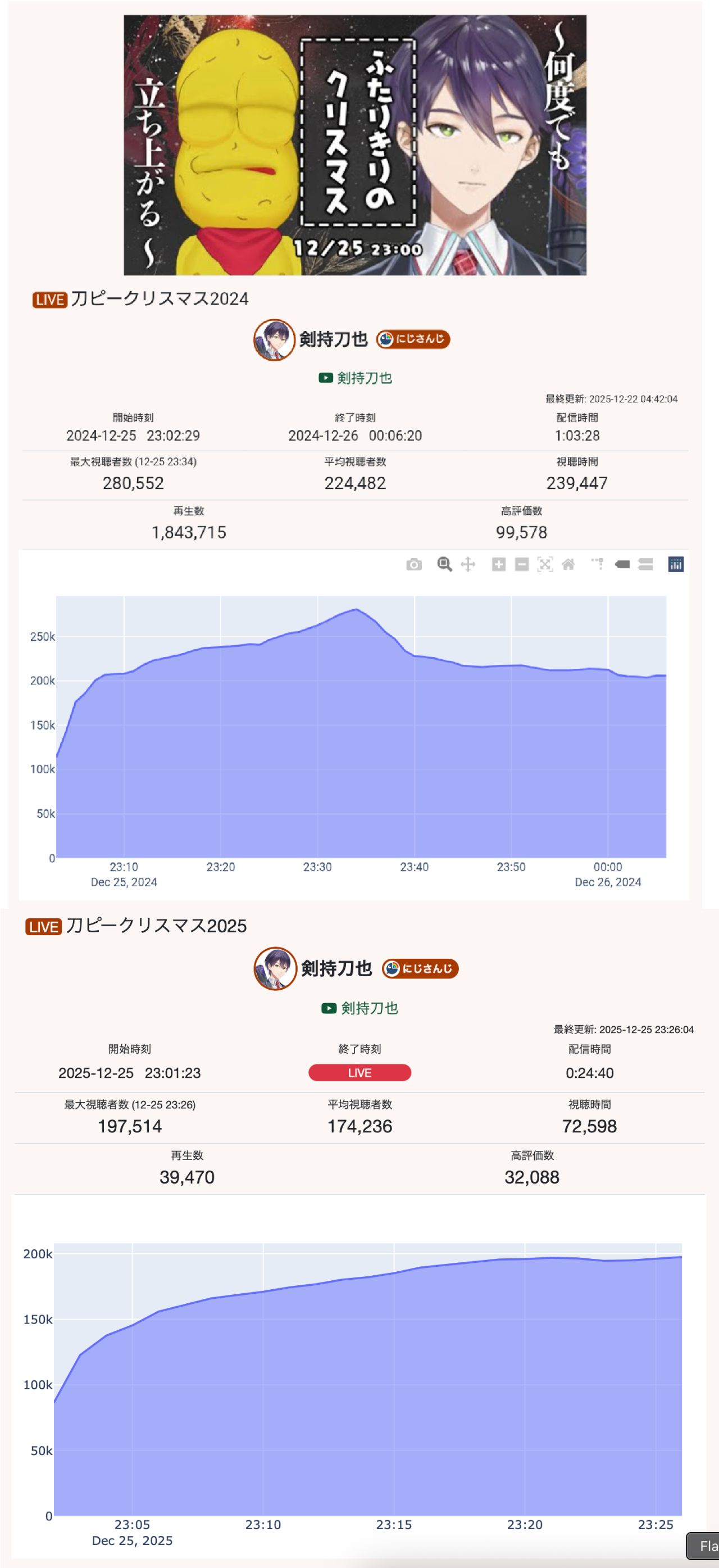 | … | 296無念Nameとしあき25/12/26(金)12:06:06No.1375666314+>にじさんじ新人は個人と比べたら伸びてる! |