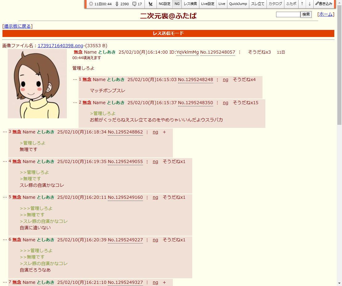 | … | 50無念Nameとしあき25/12/27(土)14:27:24No.1375899720+スクリプト荒らしに敗北し管理はスレあきに丸投げだしな |