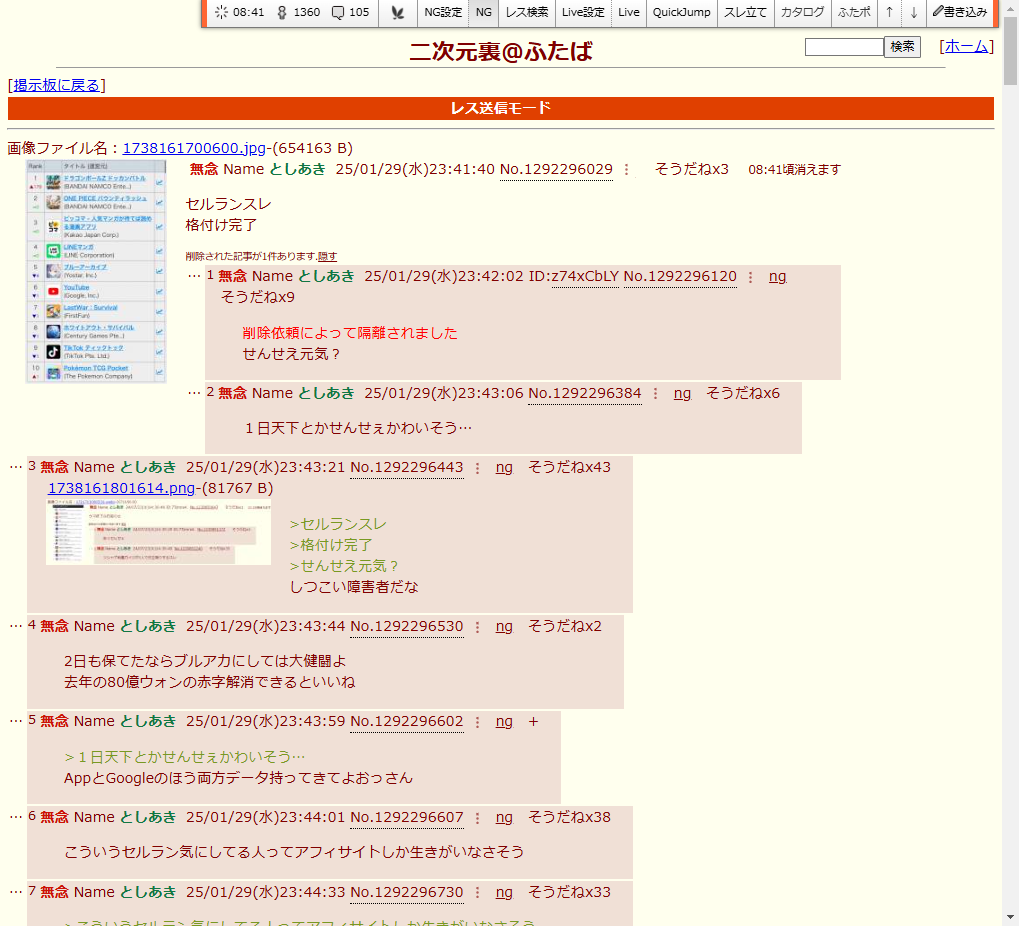 | … | 41無念Nameとしあき25/12/27(土)14:22:30No.1375898776+>17人叩きスレとかドラえもん社長スレとか荒らしのおっかけファンしてる荒らしがやたら目立つようになったな |