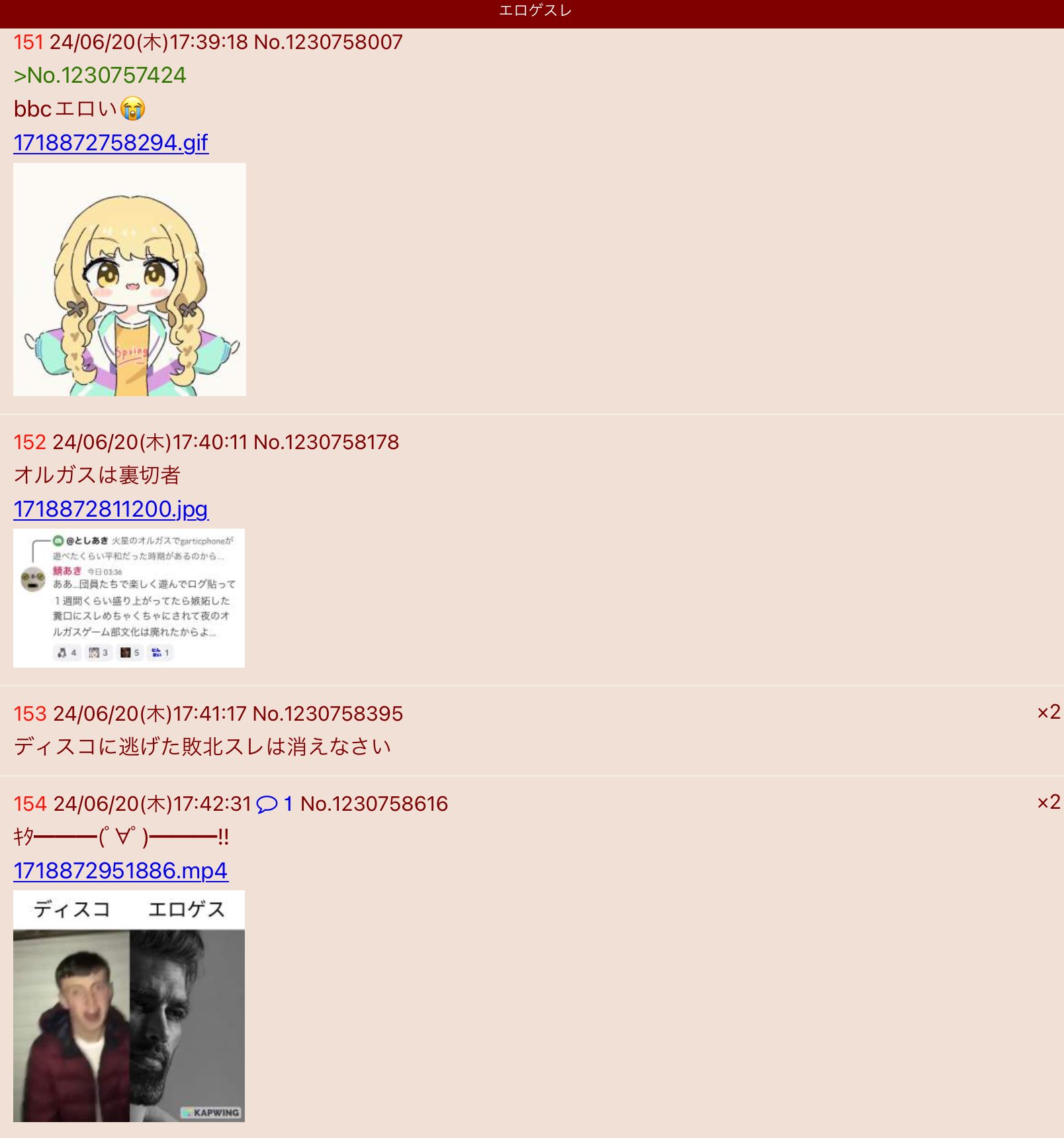 | … | 53無念Nameとしあき25/12/27(土)19:40:21No.1375964616そうだねx3>京都の伏見区のめぶきちゃんねるに各掲示板のどうしようもない荒らし連中が一堂に会して荒らしの相談してるて聞いて爆笑しちゃったんだよ❤️ |