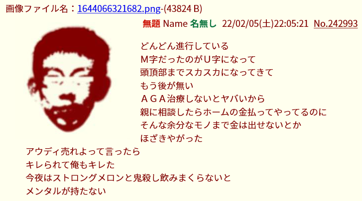 | … | 40無念Nameとしあき25/12/28(日)10:25:12No.1376092015そうだねx5>ちなみにスレ豚は薄毛を気にしているそうだ |