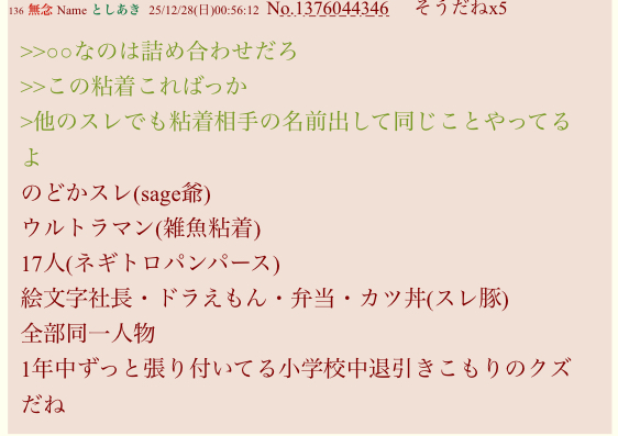 | … | 8無念Nameとしあき25/12/28(日)10:50:15No.1376096266そうだねx3ティタアホスレ残党は未だにふたばに住んでるみたいだな |