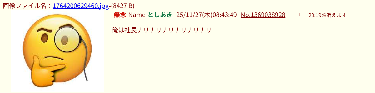 | … | 203無念Nameとしあき25/12/28(日)11:49:24No.1376107240そうだねx3誰にも反論されないスレでぬくぬく育った糖質軍団の最後のオアシスが社長スレ |