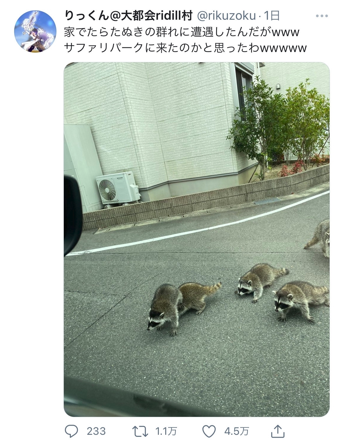 | … | 80無念Nameとしあき25/12/28(日)12:37:53No.1376116934+山の動物と言ったら大体たぬきアナグマで道路は鹿だな |