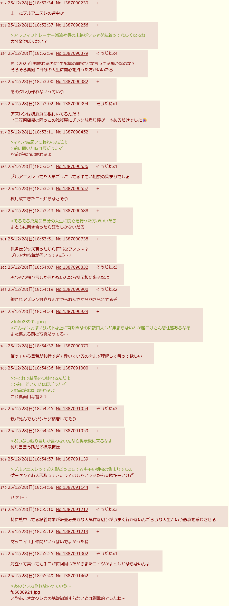 | … | 164無念Nameとしあき25/12/28(日)19:26:30No.1376212584+今日の朝に荒らしが活動してるところが目撃されてて |