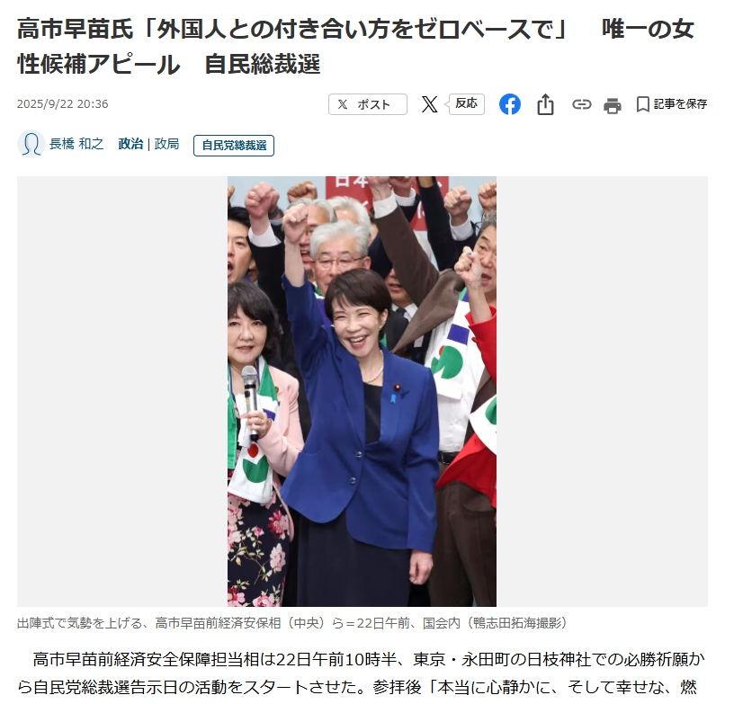 | … | 102無念Nameとしあき25/12/29(月)10:17:44No.1376338323+ 1766971064487.jpg-(290770 B) 総裁選の高市「外国人との付き合い方をゼロベースで」 |