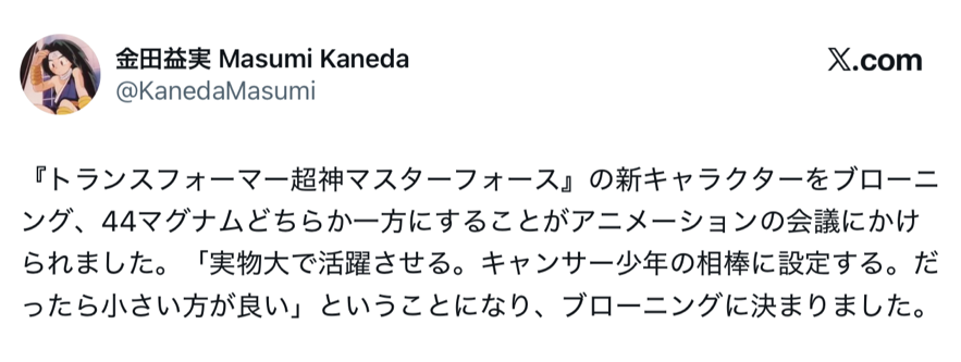 | … | 49無念Nameとしあき25/12/29(月)09:22:12 ID:xRKmYfY.No.1376329978+>それならメガトロンやブローニングになれなかったガンロボ44マグナムくんも… |