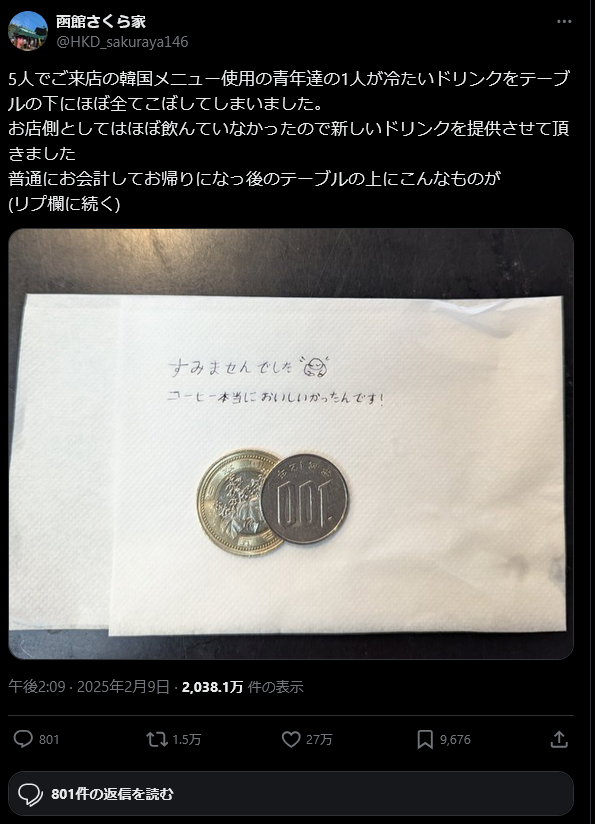 | … | 11無念Nameとしあき25/12/29(月)14:56:28No.1376391897+宝くじ売り場でお釣りの500円を500ウォン玉で渡されたことがある |