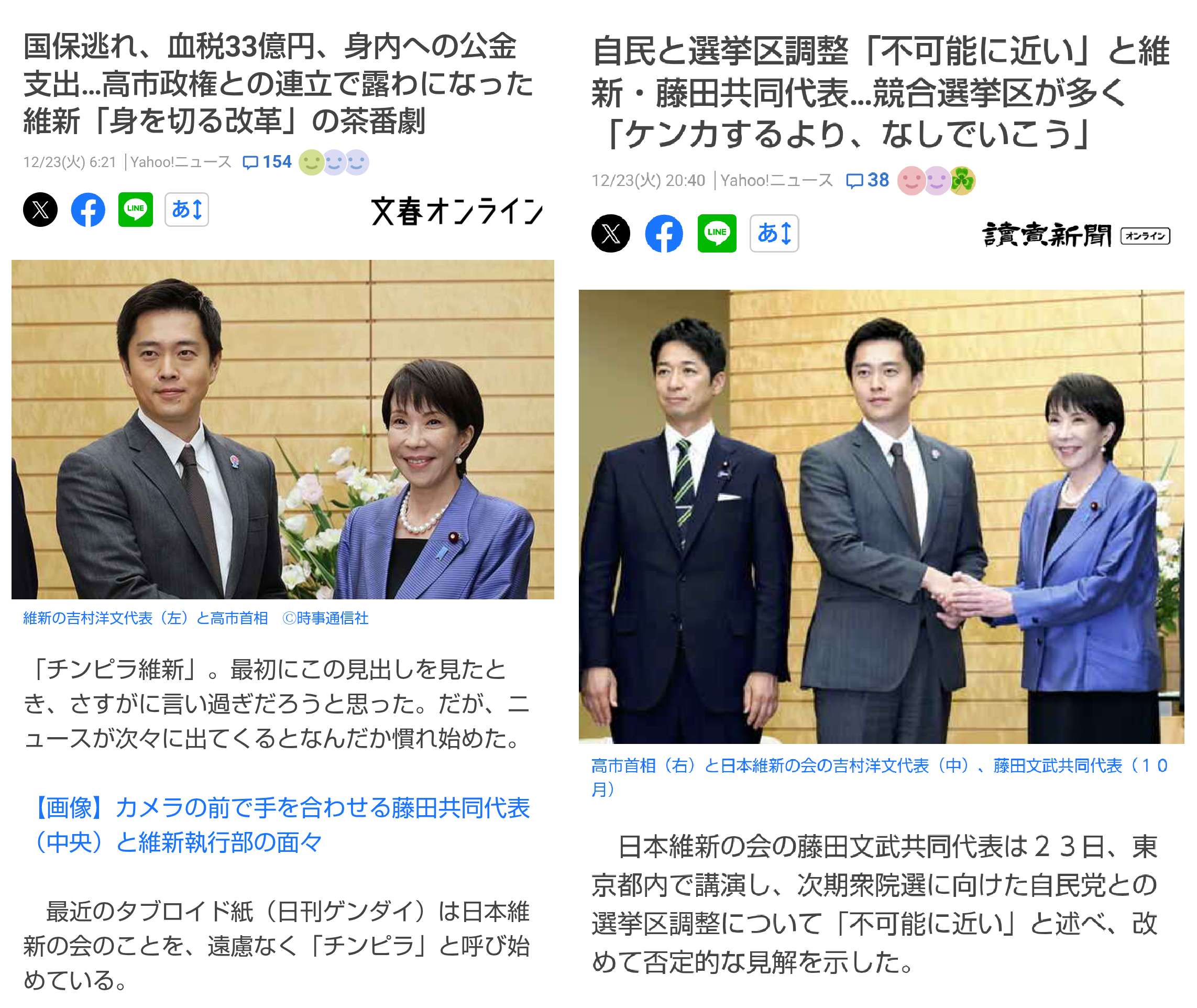 | … | 62無念Nameとしあき25/12/29(月)17:19:17No.1376421397+仲違いしたとはいえ必要なら自民党と党外協力している公明が今更立憲と選挙協力するか? |