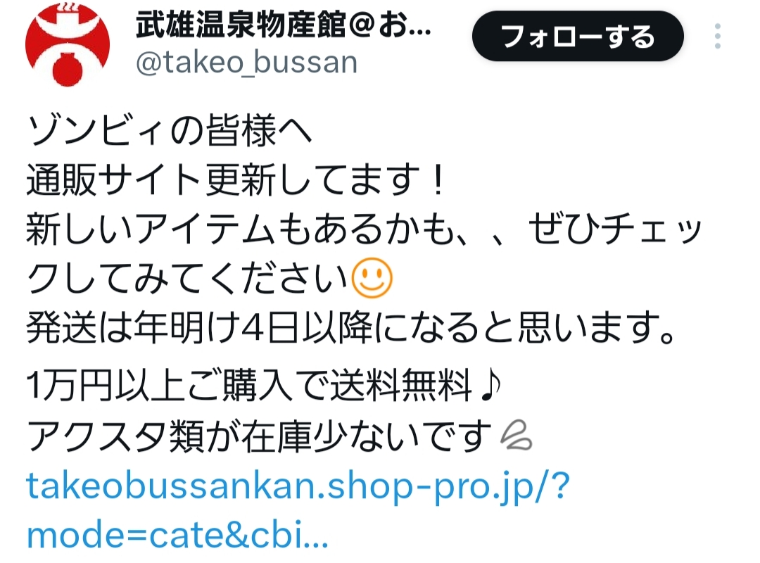 | … | 15無念Nameとしあき25/12/31(水)12:37:24No.1376844315そうだねx1 1767152244875.jpg-(294593 B) https://takeobussankan.shop-pro.jp/?mode=cate&cbid=2727665&csid=0 |
