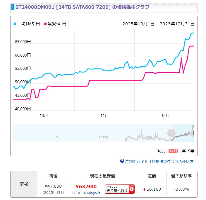 | … | 277無念Nameとしあき25/12/31(水)15:39:44No.1376884626+ 1767163184552.jpg-(92677 B) >20TB以上のHDDはそんなに高騰していないんだよな |