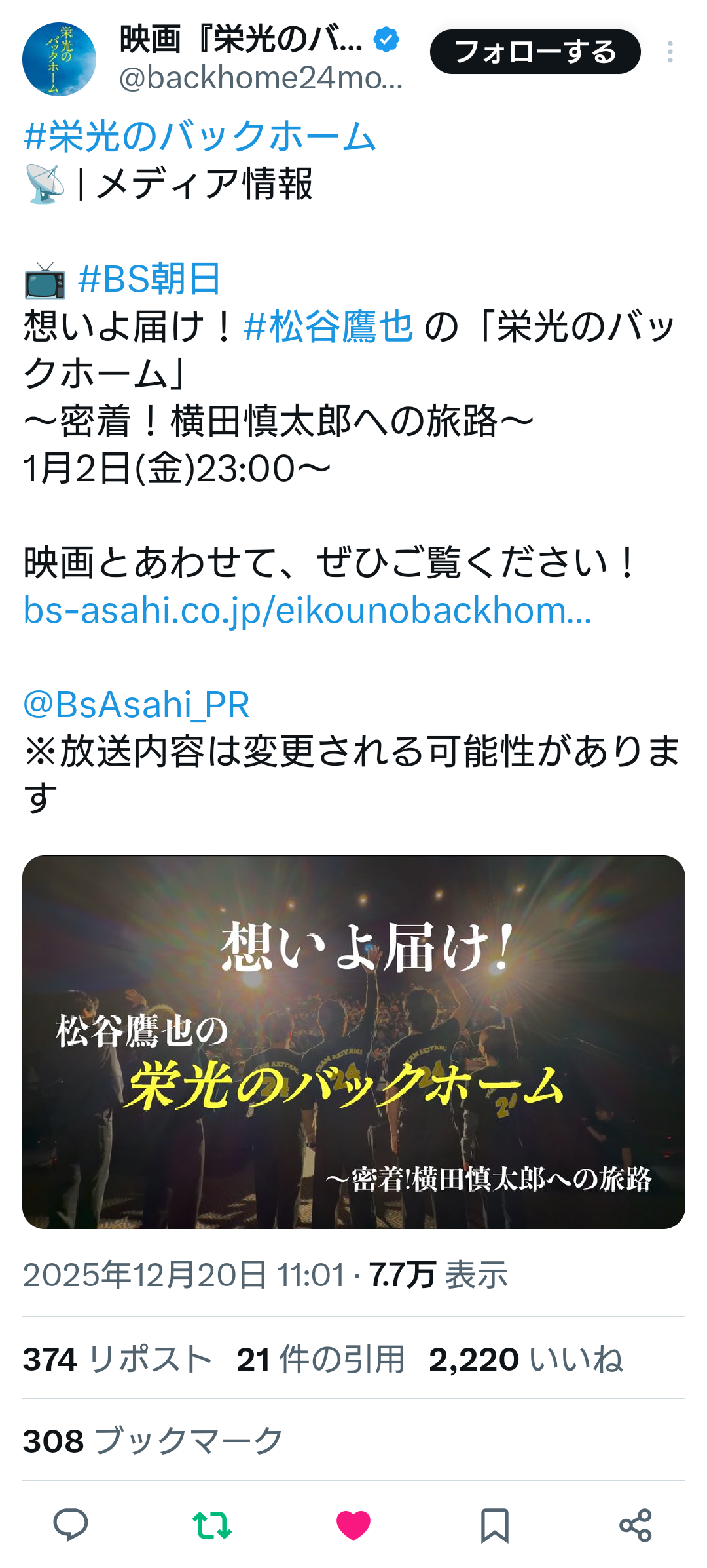 | … | 89無念Nameとしあき25/12/31(水)16:17:59No.1376893152+>>ちゃんと興行収入10奥突破したタイミングで御礼特番の制作発表しとかないとな |