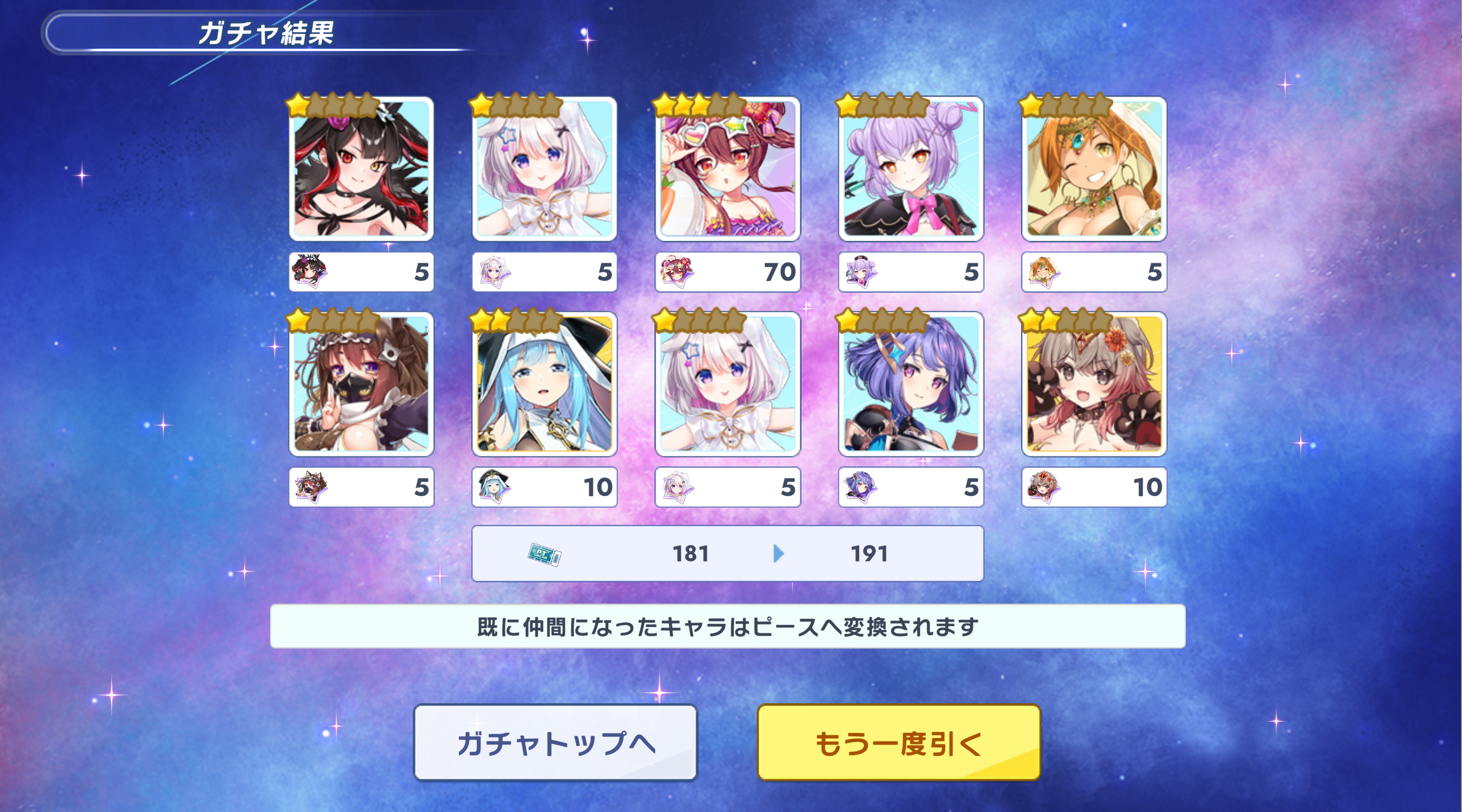 | … | 165無念Nameとしあき26/01/01(木)03:04:43No.1377064497+恒常はチケガチャにすぐ収録されるしそのチケガチャもあまり被りが起こらないからわりと新キャラも揃いやすいティン |