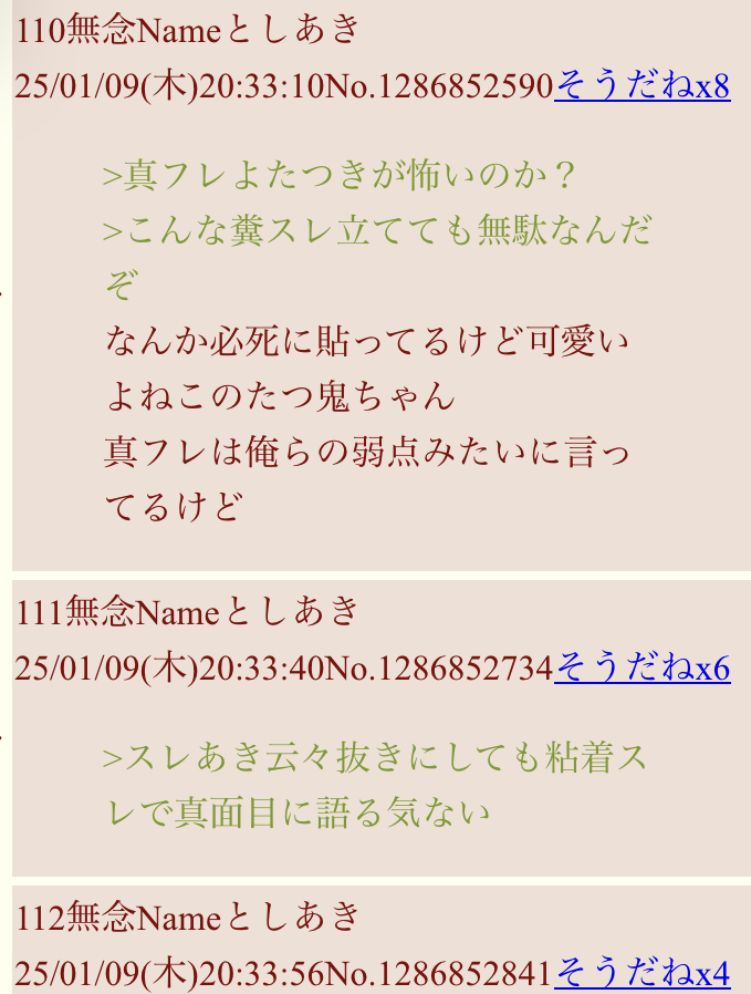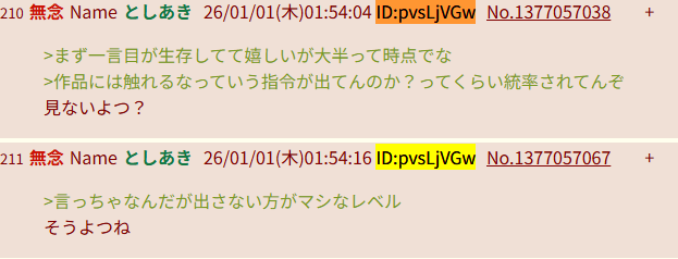 | … | 89無念Nameとしあき26/01/01(木)01:29:34No.1377053029そうだねx10ID出したのに連レスでも自演でもなかったんやな |