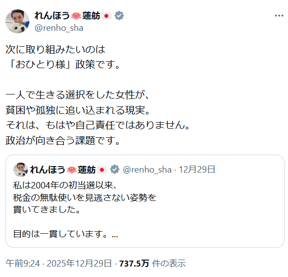 | … | 132無念Nameとしあき26/01/01(木)09:59:27No.1377092935+おひとりさま政策って上野千韓鶴子の路線か |
