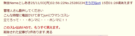 | … | 9無念Nameとしあき26/01/02(金)01:24:26No.1377293239+書き込みをした人によって削除されました |