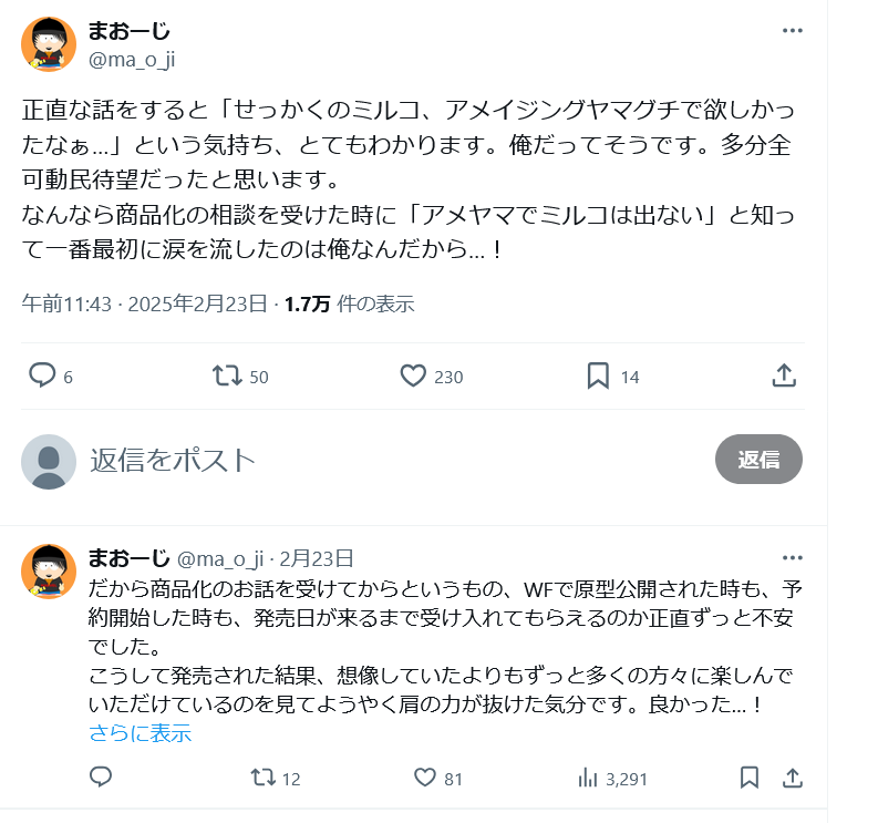 | … | 78無念Nameとしあき26/01/02(金)22:01:36No.1377482394+ミルコはすぐ捌けた割に再販予定無いな |
