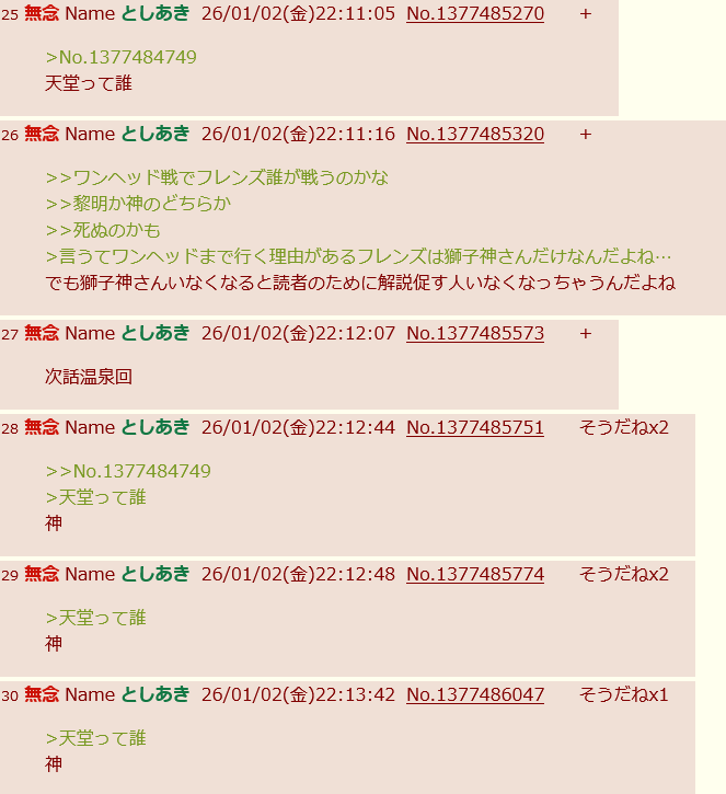 | … | 32無念Nameとしあき26/01/02(金)22:14:17No.1377486229そうだねx17神んもー |