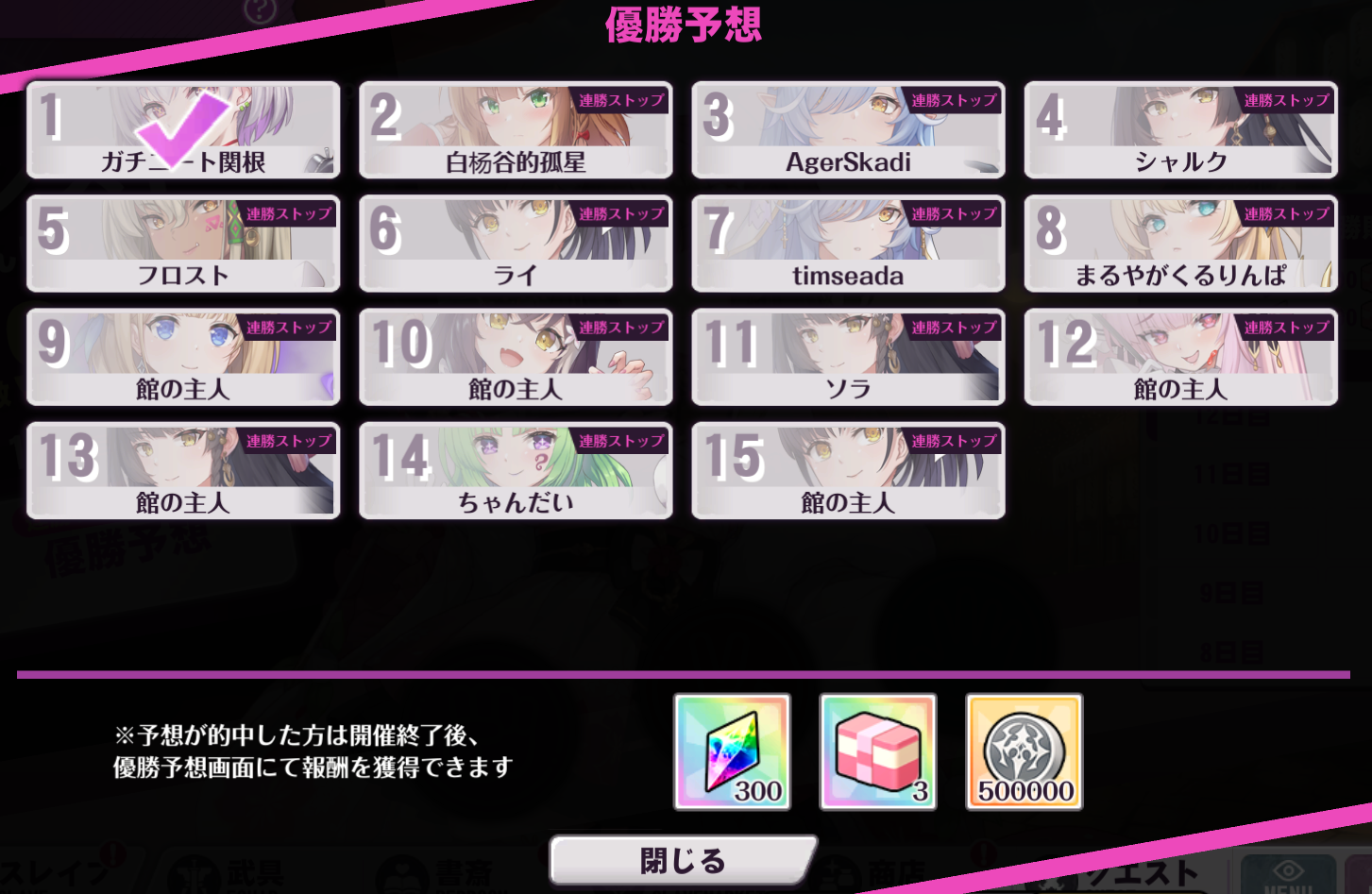 | … | 110無念Nameとしあき26/01/12(月)02:13:24 ID:1XnQ6c9YNo.1379564973そうだねx1同盟戦くっそ長くてくっそだるいンだわ |